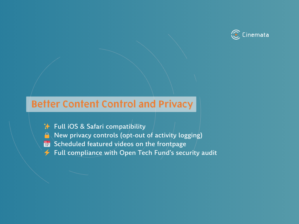 Cinemata.org gets smarter content scheduling and stronger privacy controls. Plus, videos now work better on iPads and Safari. A small update that makes a big difference for our community. Read more.