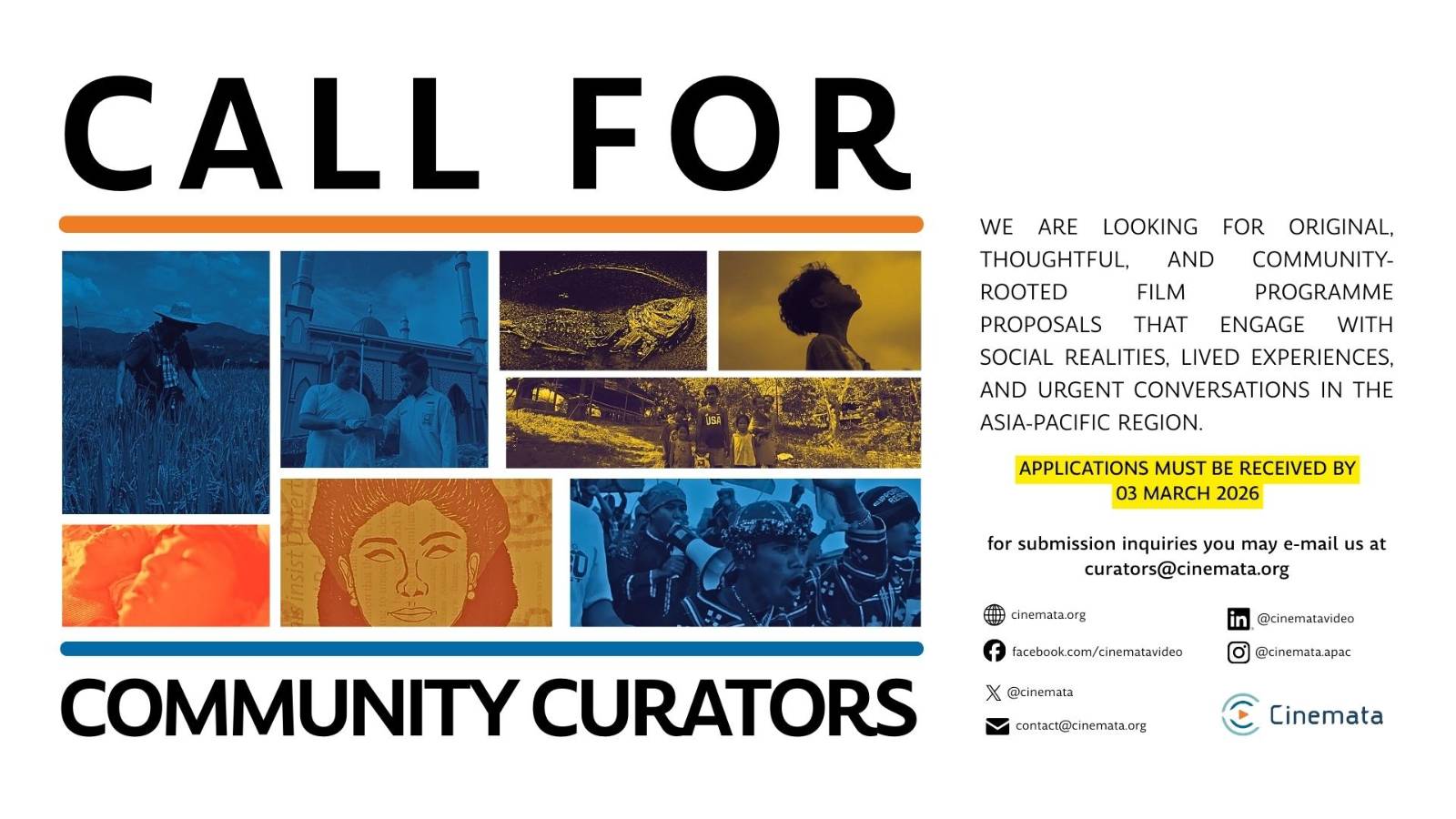We’re inviting curators, programmers, and cultural workers from across the Asia-Pacific to propose community-rooted film programmes for Cinemata. The Community Curators programme supports shared viewing, dialogue, and advocacy through film. Read more.